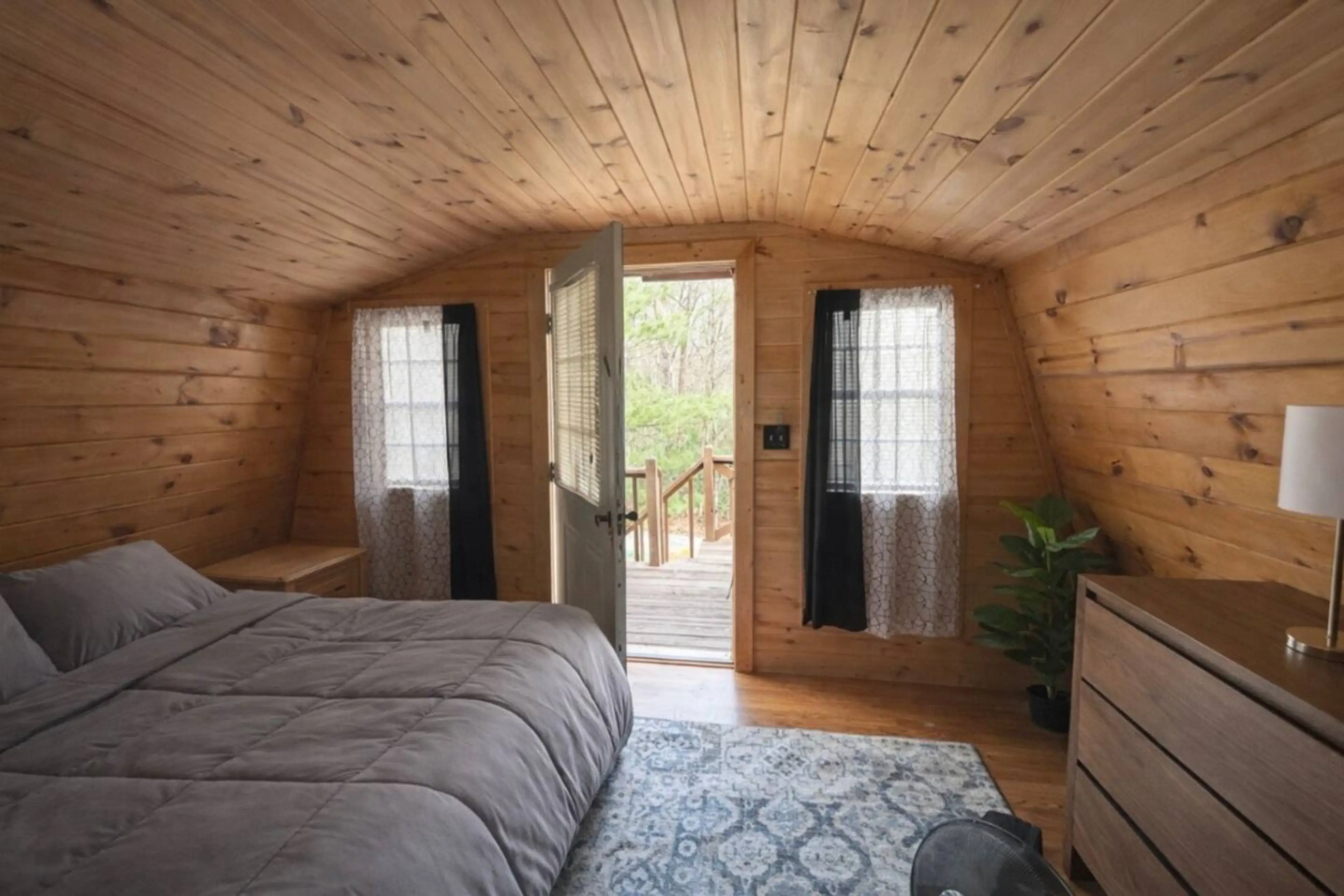 Off the Grid for Four – Escape to a rustic tiny home cabin in the woods of Cherry Log, GA. This two-story retreat sleeps four with a loft featuring a king bed and two twins. Enjoy a cozy living area, kitchen, full bath, and a spacious deck with hot tub and grill. Perfect for unplugging, stargazing, ...